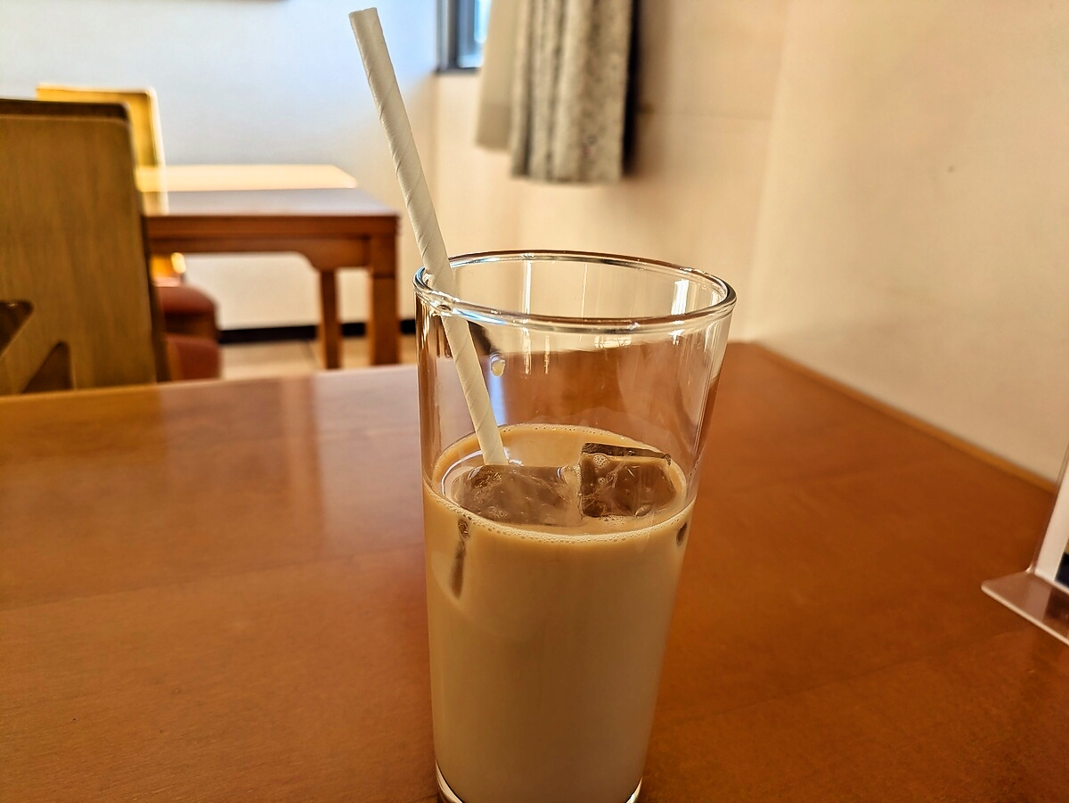 アイスカフェオレはすっきりとした苦味とミルクのまろやかさが、食後のリフレッシュにぴったり