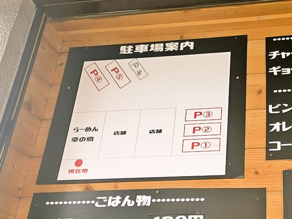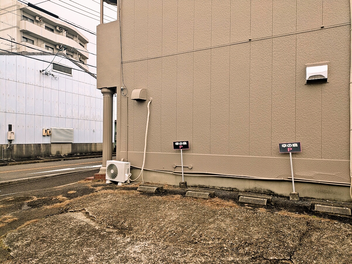 駐車場は店舗横(南)と裏(東)にそれぞれ3台づつ用意されている