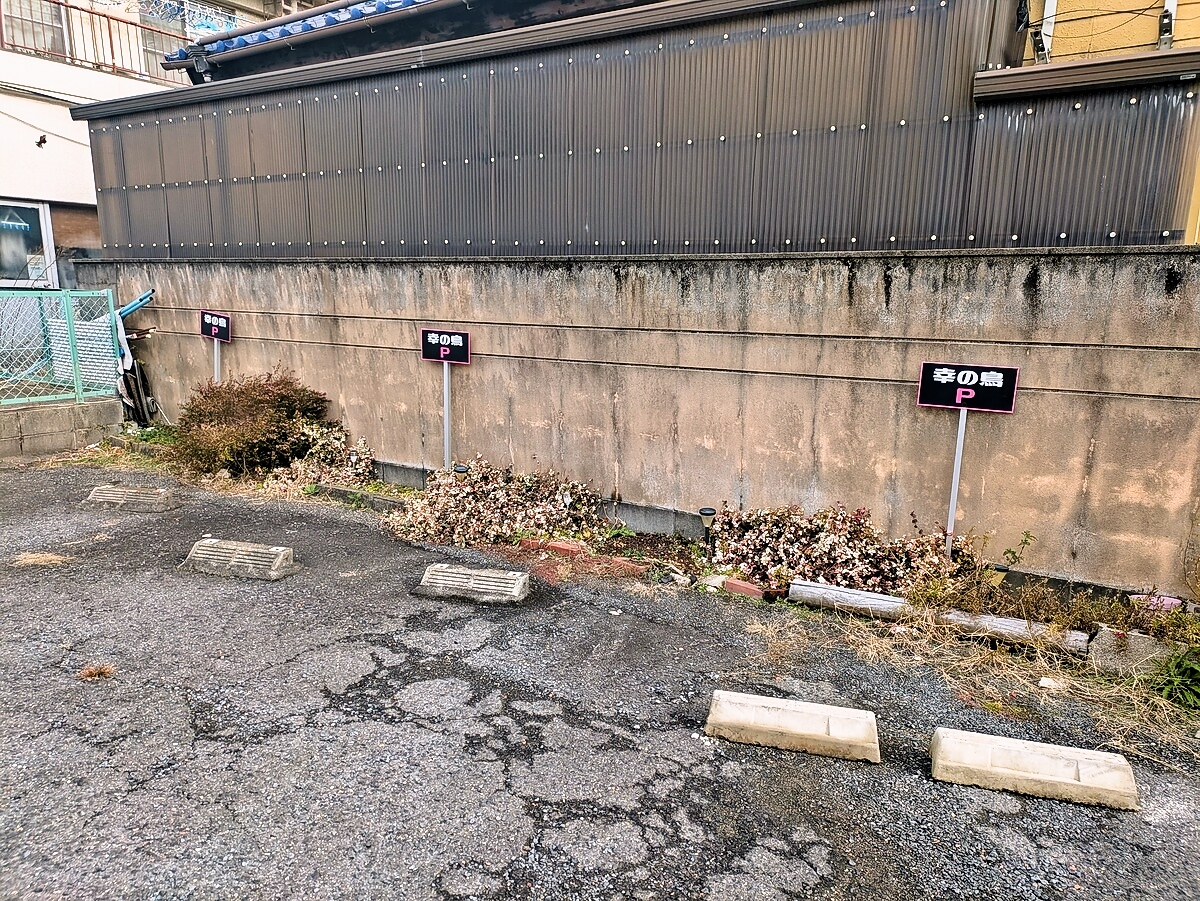 店舗裏、それぞれ店名の書かれた立て札があるのでわかりやすい
