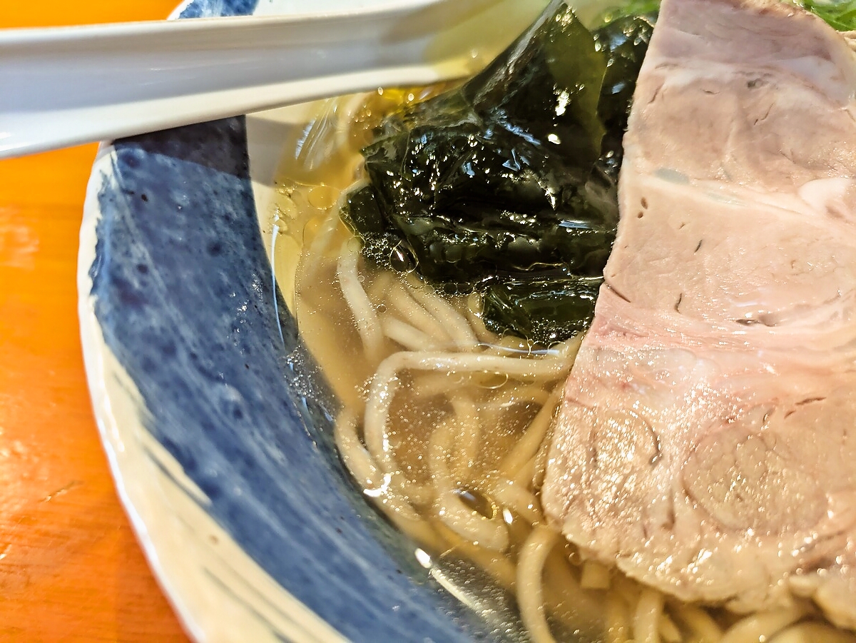 和風テイストさえ漂うクリアなスープは、鶏の深い旨味がベースで、塩のキレが程よく効いている