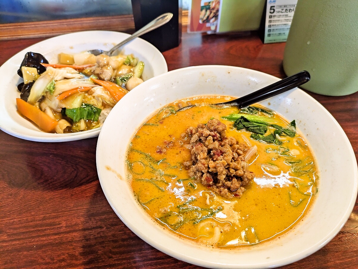 「担々麺 + 中華飯」セットは、ボリューム・価格・味のバランスがとても良いランチの定番