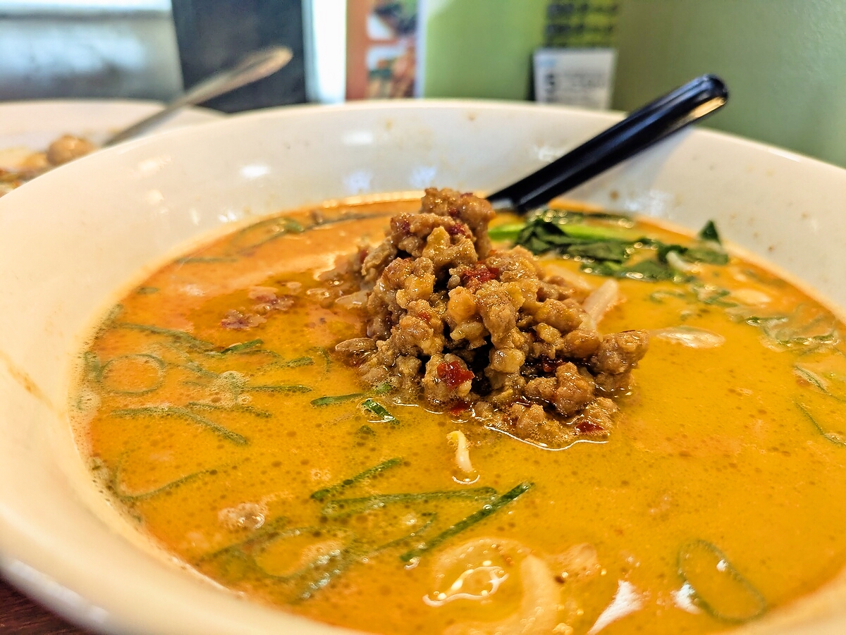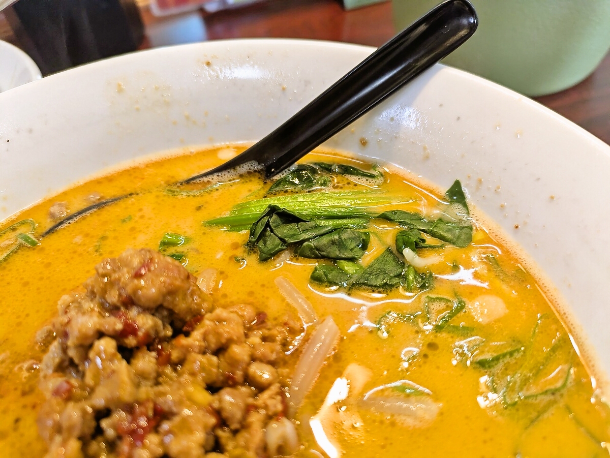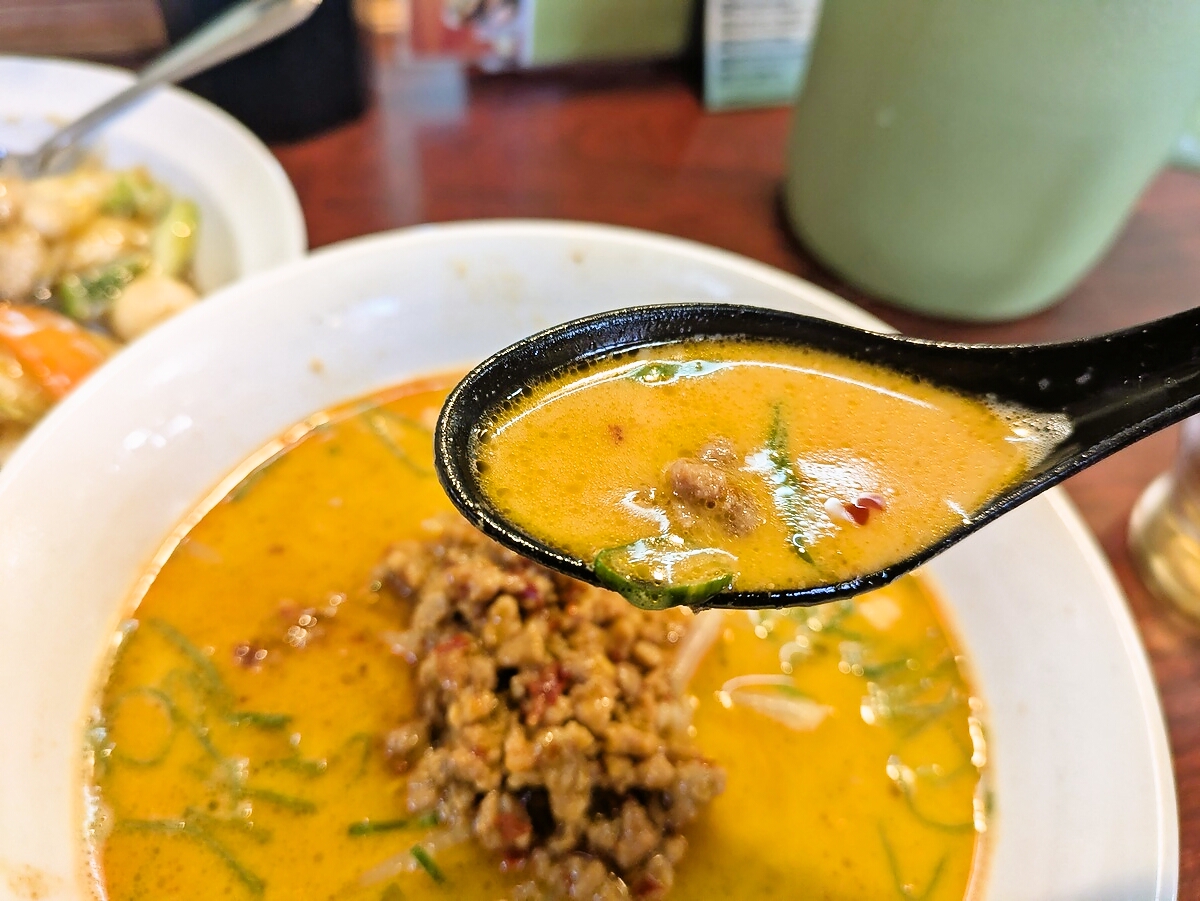 スープは芝麻醤(チーマージャン)のコクがしっかりと感じられる、クリーミーな口当たり