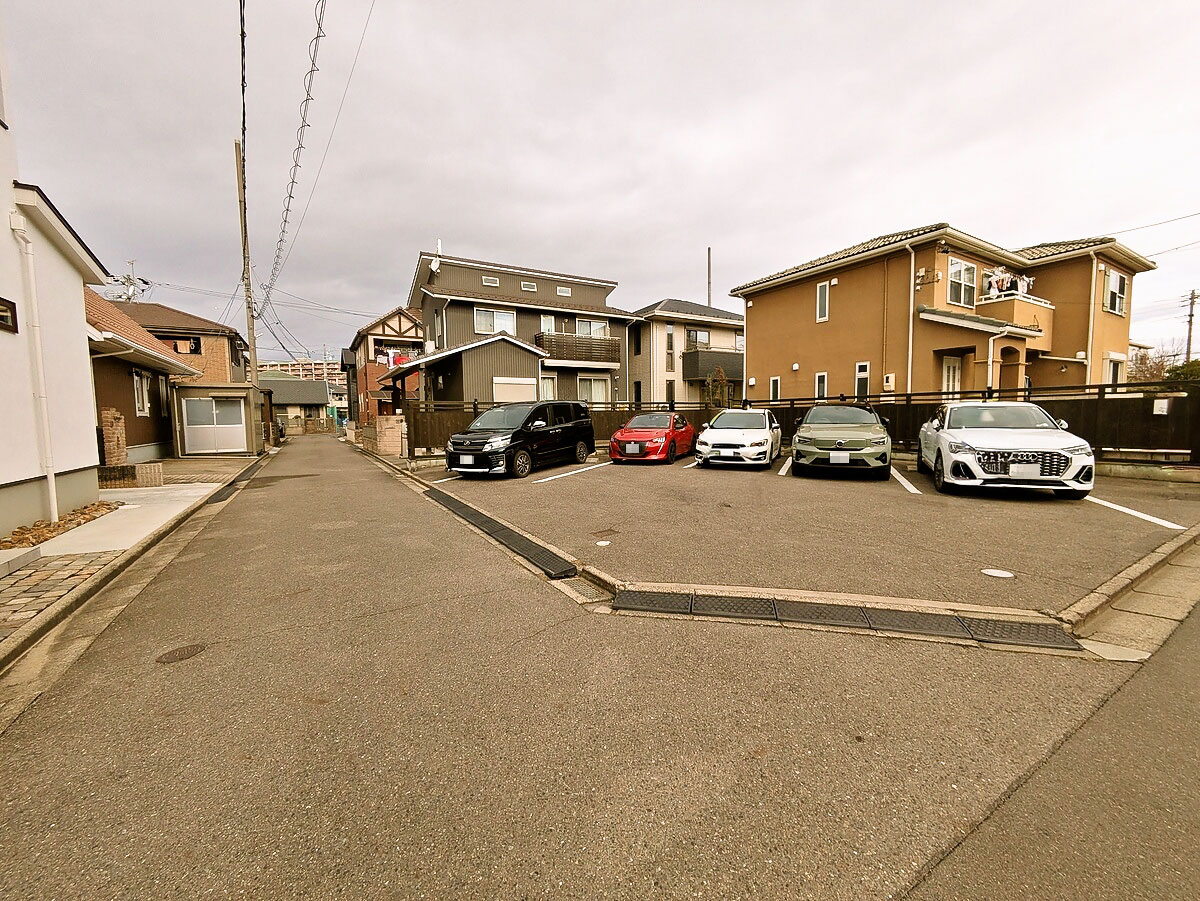 駐車場と外観
