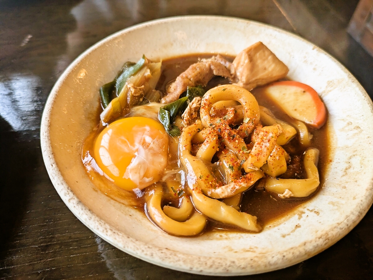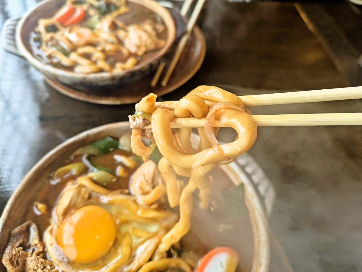 麺は手打ちで固めの食感が際立ち、噛むごとに小麦の風味が広がる