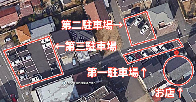 駐車場は下の画像の通り3箇所に用意されている