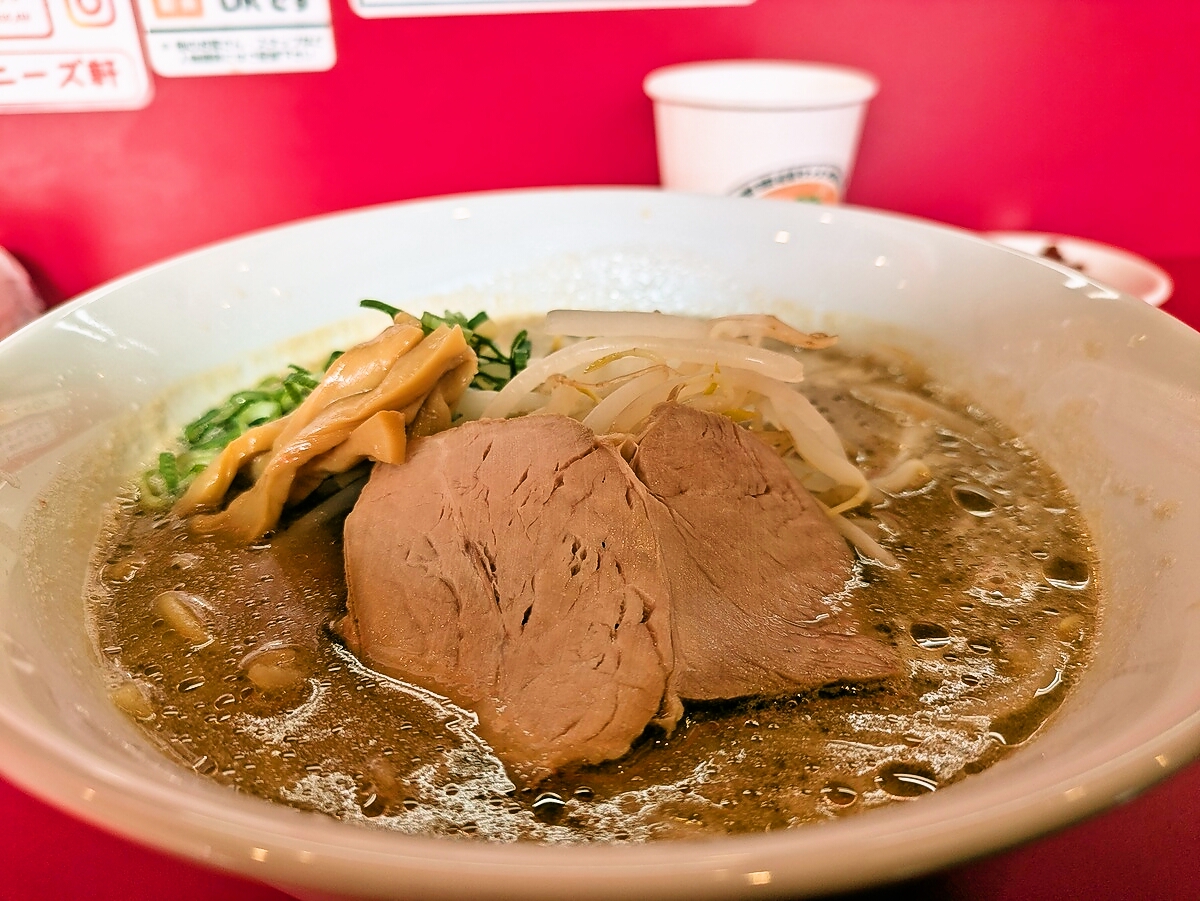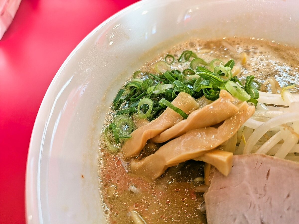 具材はチャーシュー、ネギ、もやしがたっぷりで、ボリューム満点