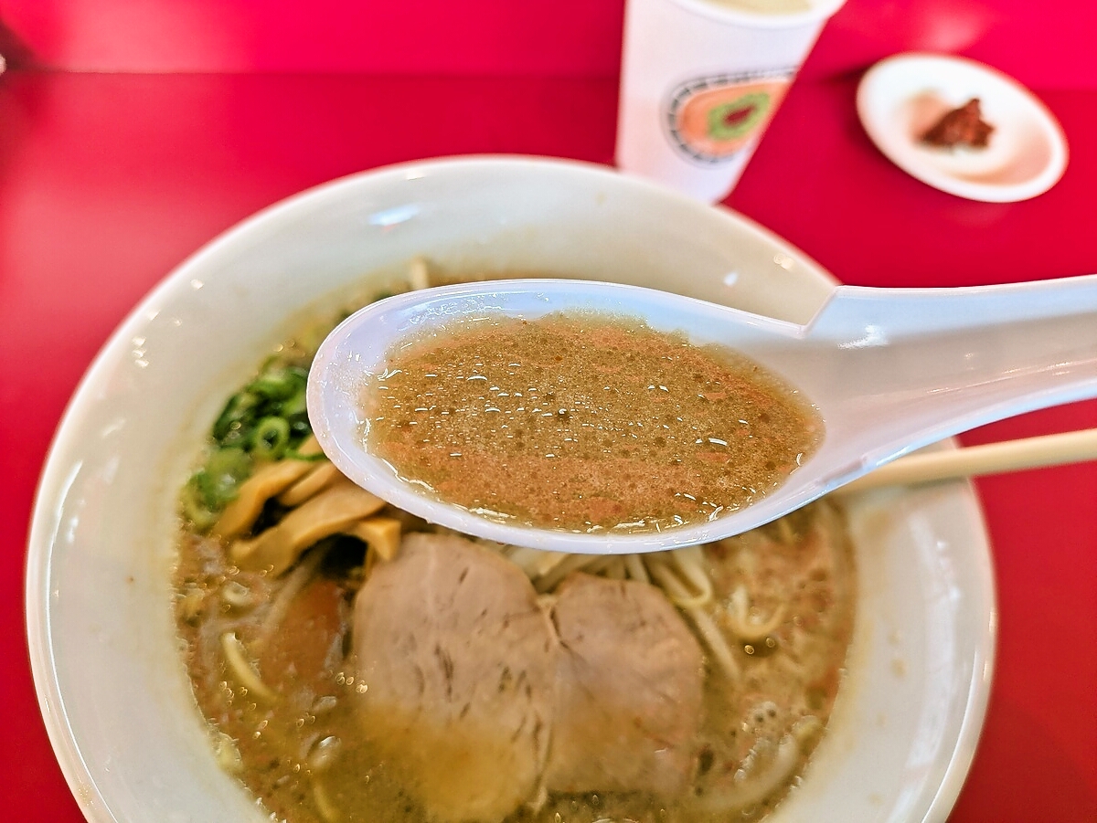 スープは白味噌の優しい甘さとクリーミーさが広がり、ほんのりニンニクの風味がアクセント