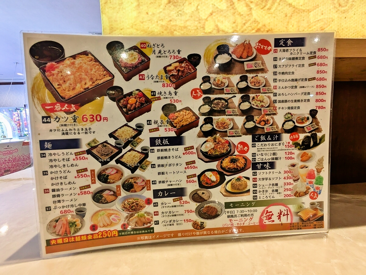 平日限定(月~金)で朝風呂利用の入浴者に無料モーニングがサービスされるスーパー銭湯
