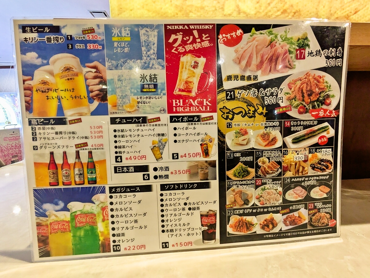 卓上のメニューも貼っておく