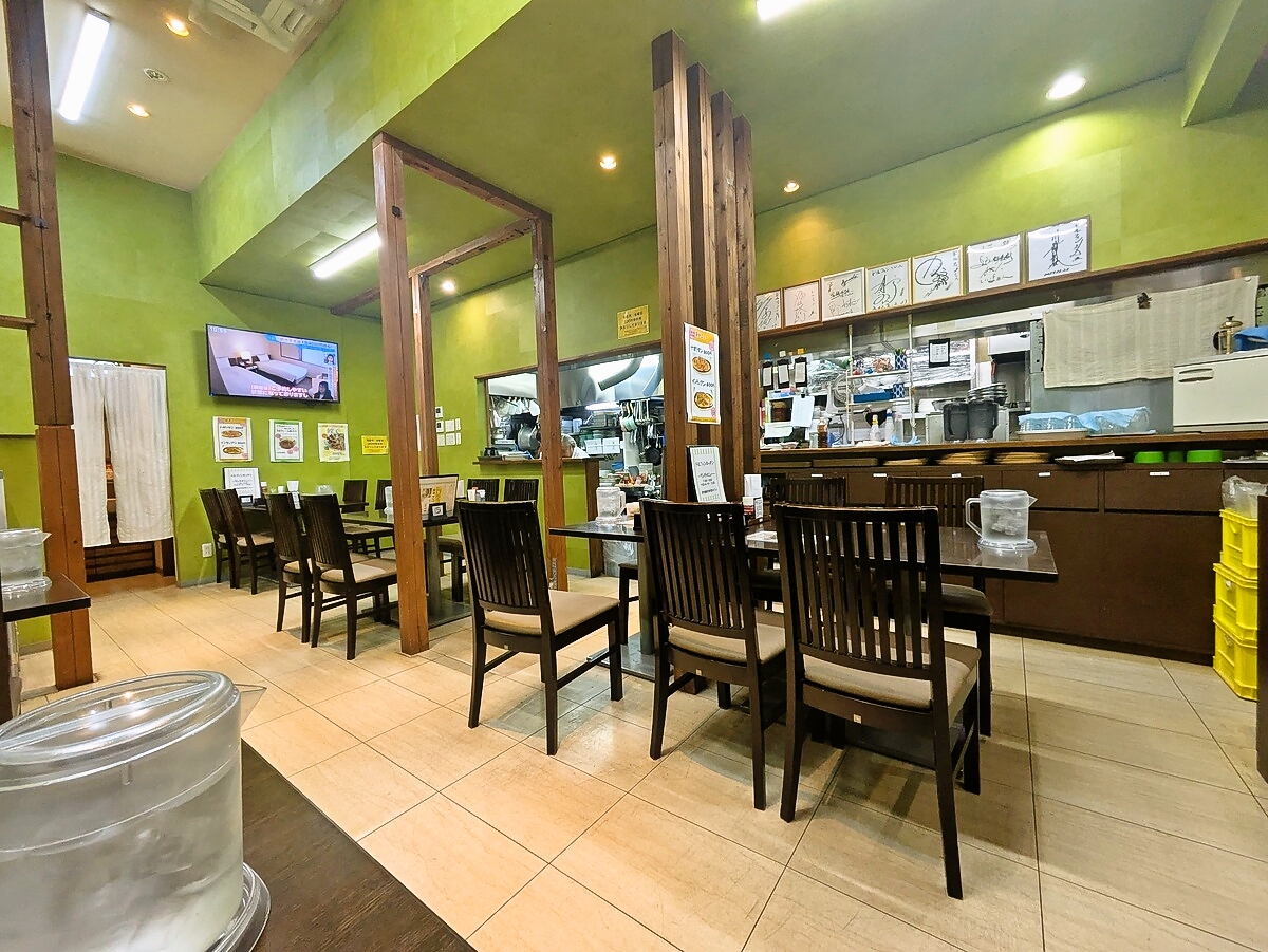 店内は清潔で明るく、テーブル席がゆったり配置され、家族連れや一人客も気軽に利用できる雰囲気