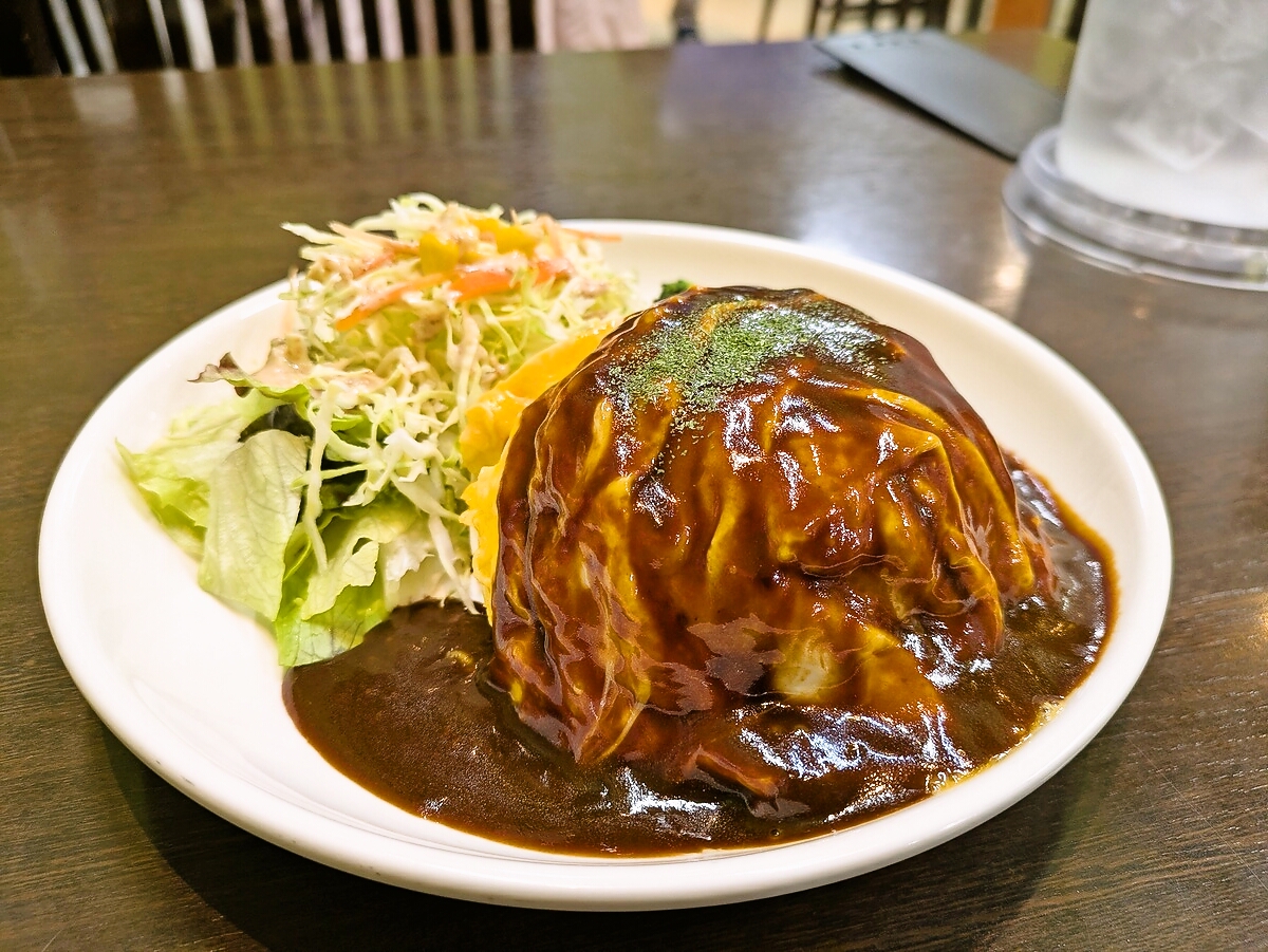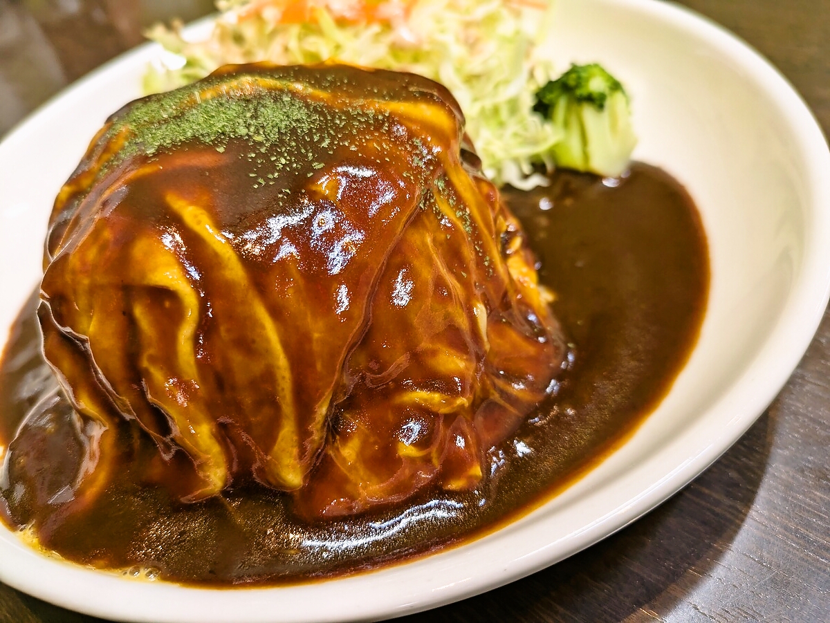 じっくり煮込まれたデミグラスソースは、コクが深く、ほんのりとした苦味と甘みのバランスが絶妙