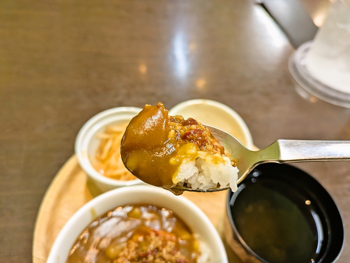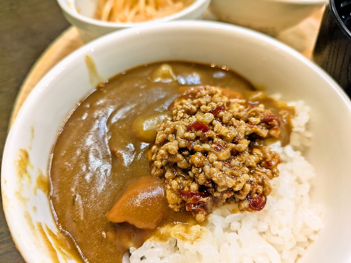 そこに台湾ミンチをトッピングすると、ピリッとした辛さと挽肉のジューシーさが加わり、台湾風カレーに変身