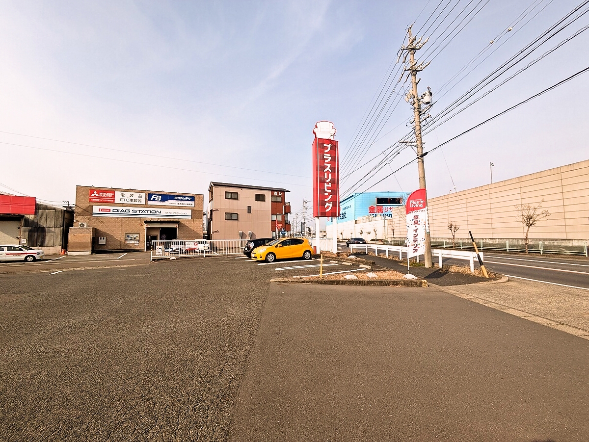 店舗東側のプラスリビング(家具屋さん)の駐車場に停めることが可能