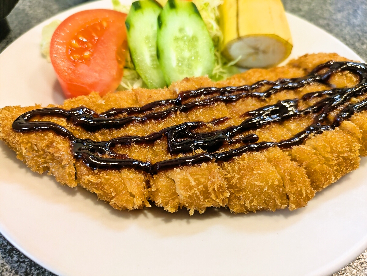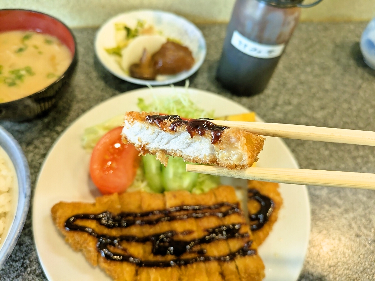 とんかつは、衣がサクッと揚がり、中の豚肉は程よい厚みでやわらか
