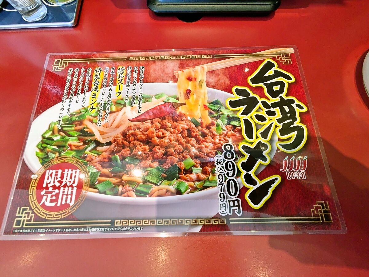 「台湾ラーメン(979円)」の配膳