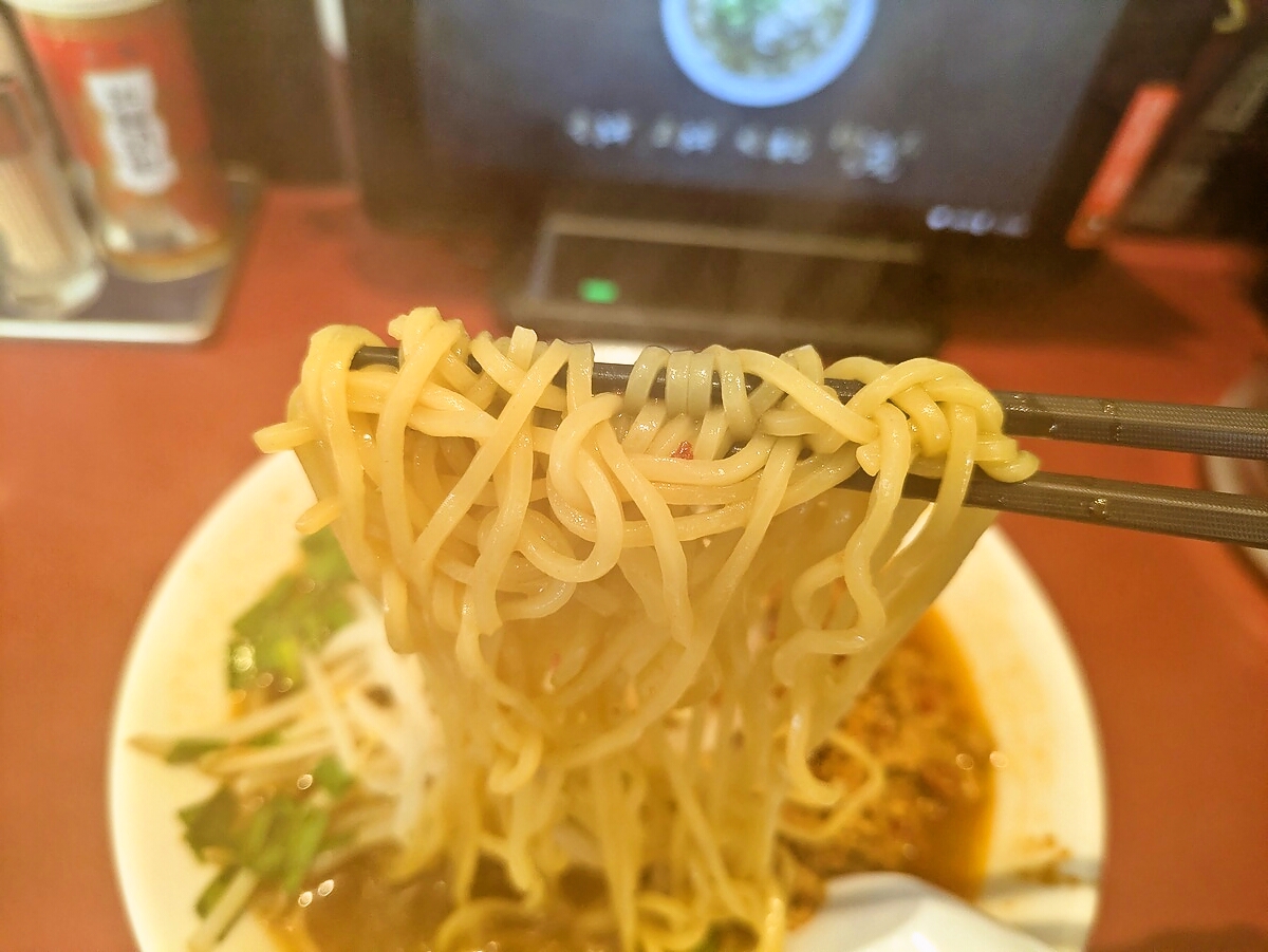 麺は中細のストレート麺で、スープがよく絡む