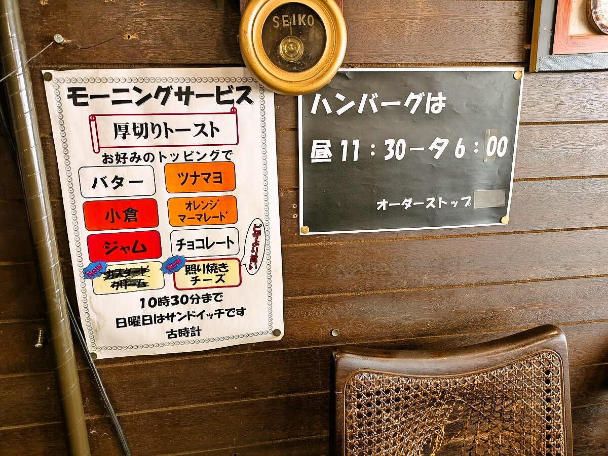 モーニングは10:30まで、ハンバーグは11:30~18:00