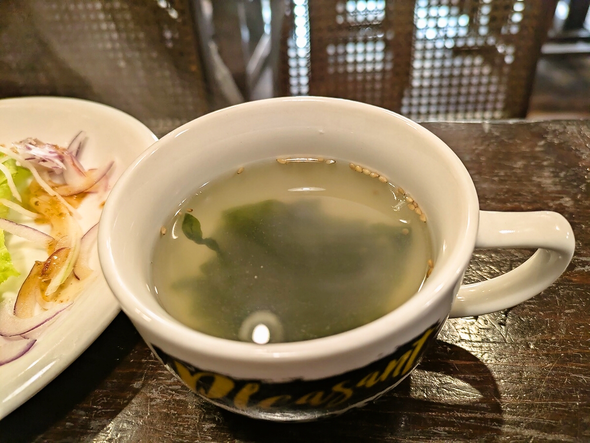 わかめスープの優しい出汁の味わいが全体を締めくくる