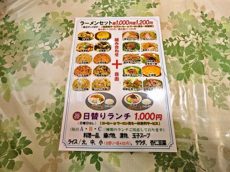 ラーメンセット「特製台湾ラーメン+中華飯(1,000円)」の配膳