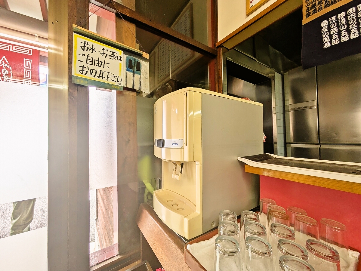 水とお茶はセルフで用意する