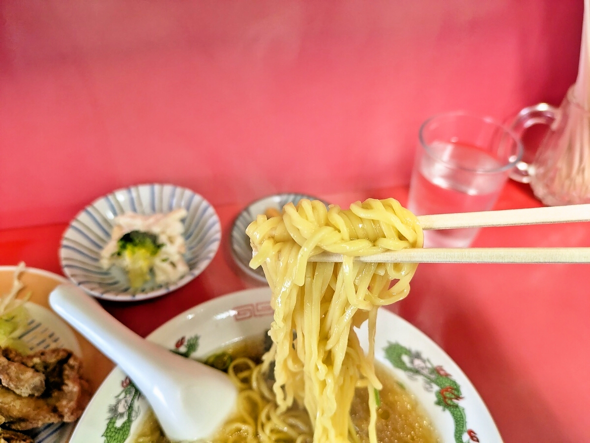 麺は中細のストレートで、ツルツルとした食感が心地よく、スープにしっかり絡む