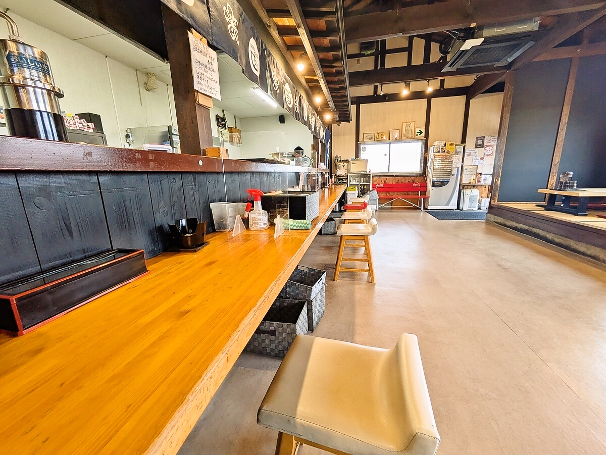 カウンター席と座敷席が用意されていて、木目調のインテリアが居心地を良くしている