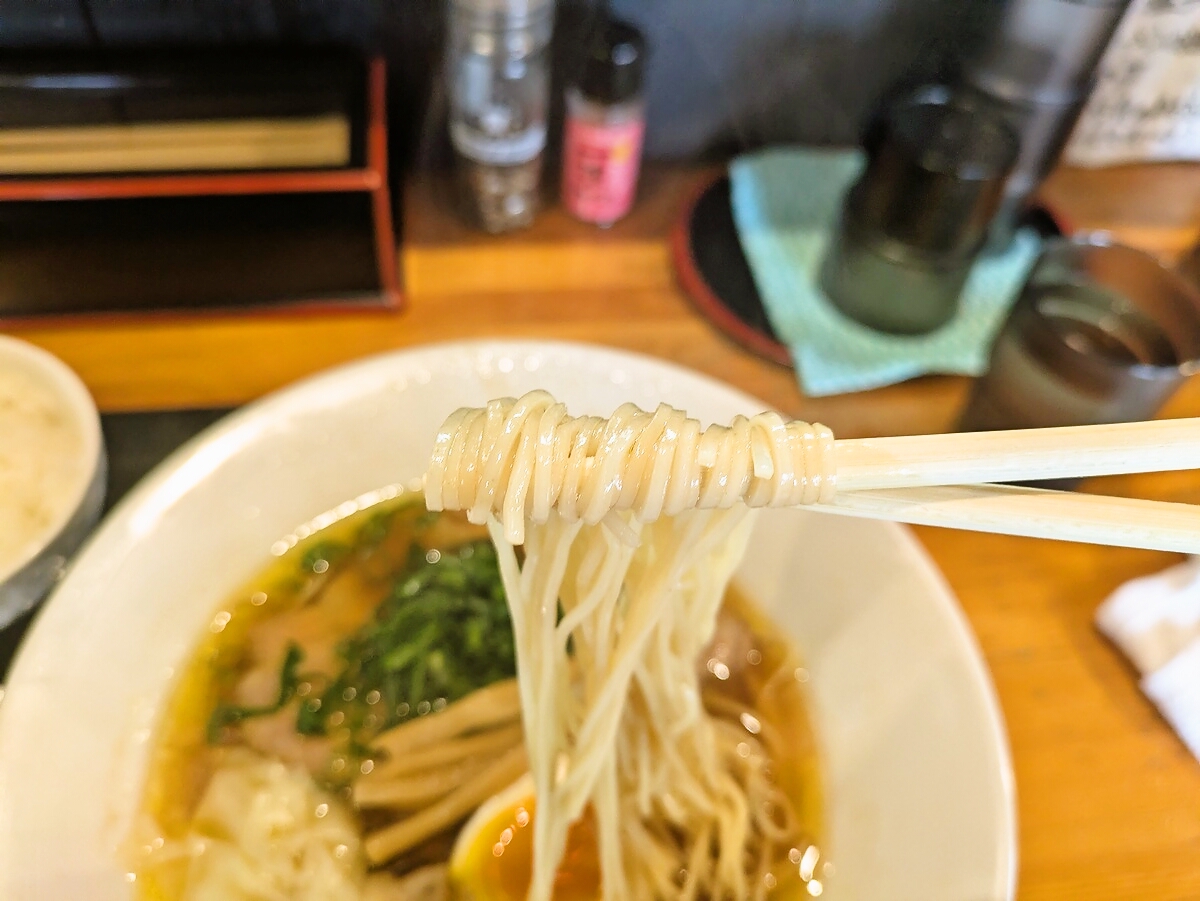 麺はコシがありツルツルとした喉越しで、スープをしっかり絡めてくれる