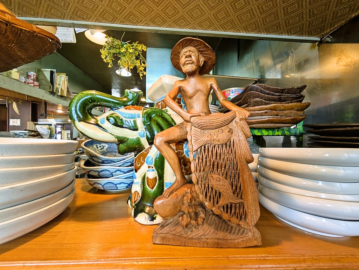 漁師を描いたバリ島の手彫り木彫り人形