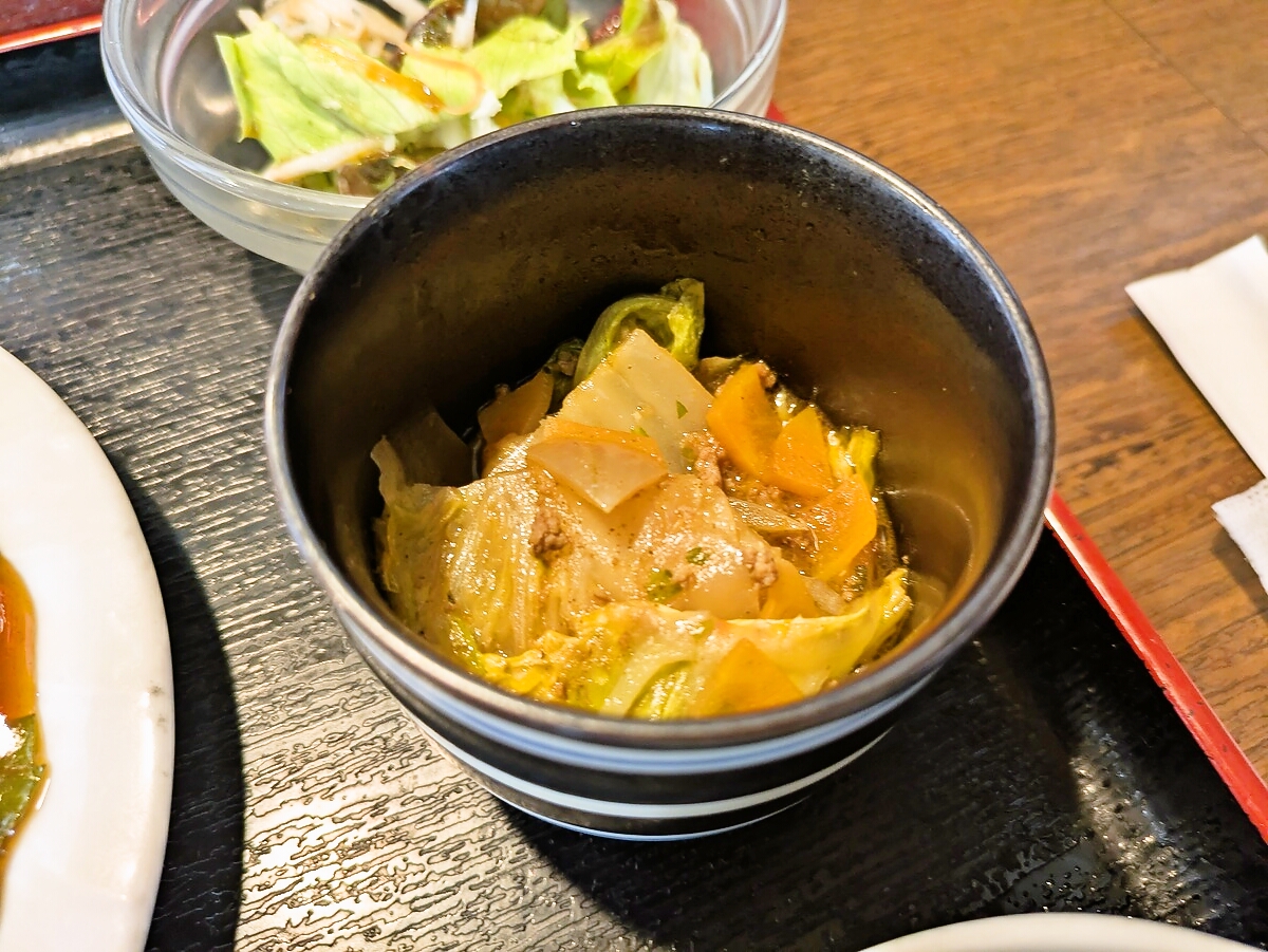 小鉢として付いてきた根野菜のカレー風炒めは、季節感のある一品