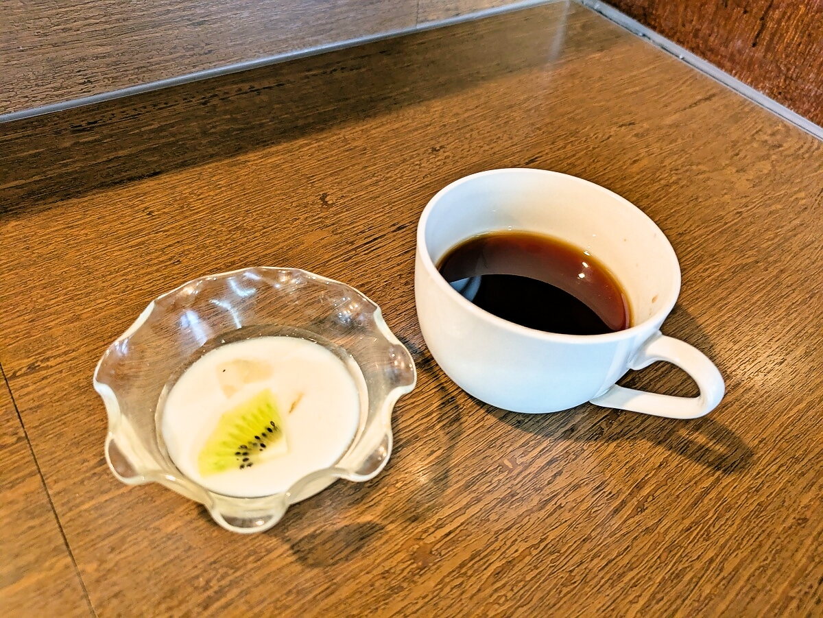 セルフサービスのホットコーヒーは食後にゆったりと飲めるのが嬉しいポイント