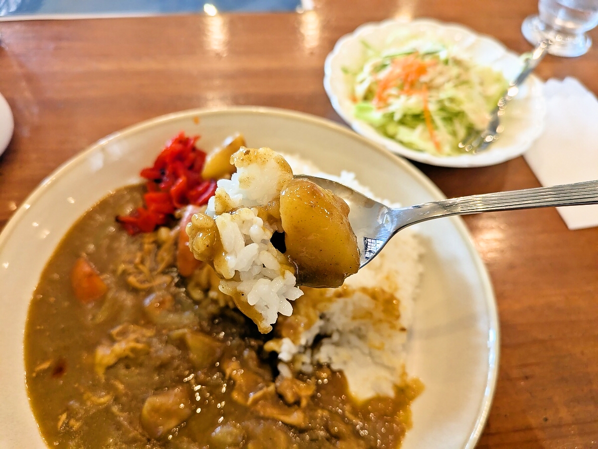 煮込み具合が絶妙で、ジャガイモはホクホク、ニンジンは柔らかく、全体が一体となって口の中で広がる懐かしい美味しさを感じさせる