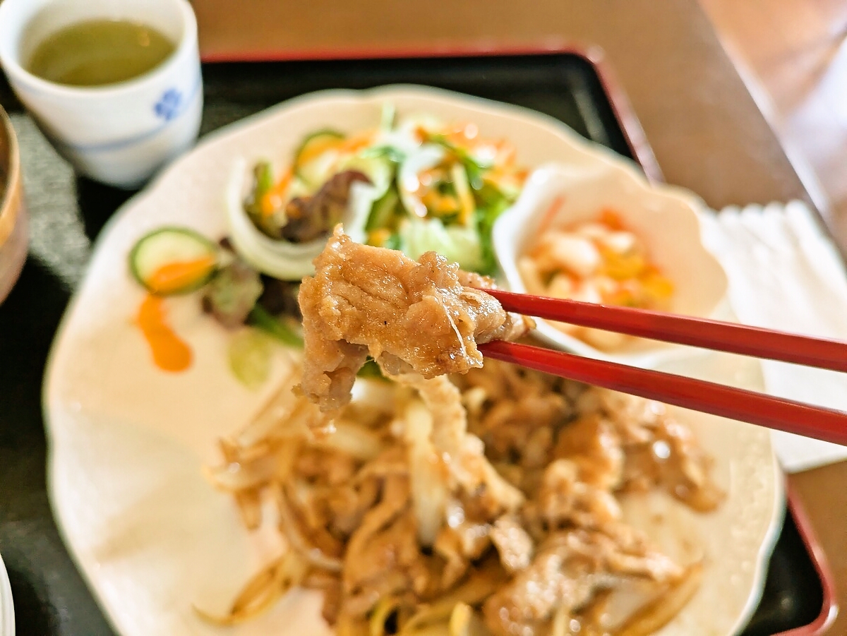 薄切り豚肉はふんわり柔らかく、玉ねぎの甘みがしっかり染み込んでいて、甘辛い生姜ダレが絶妙に絡んでる