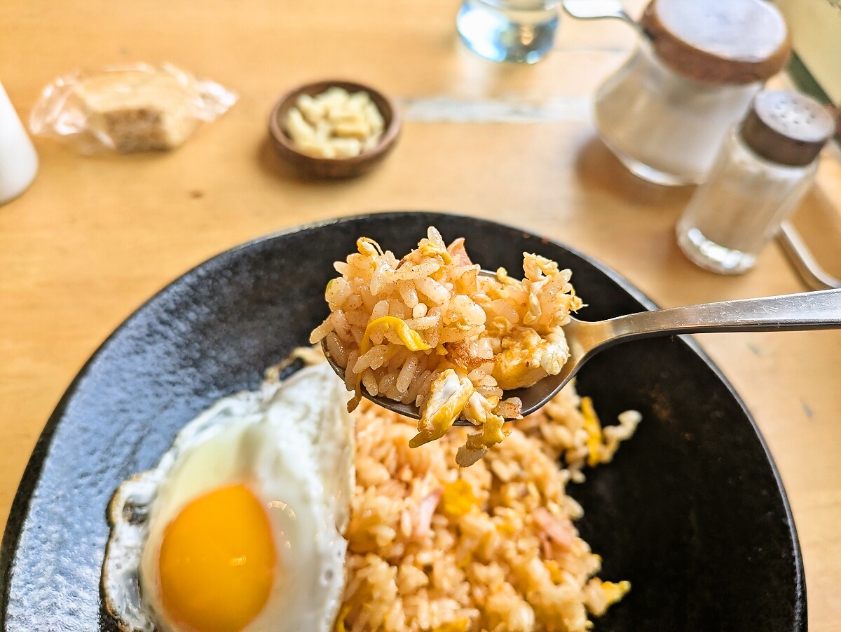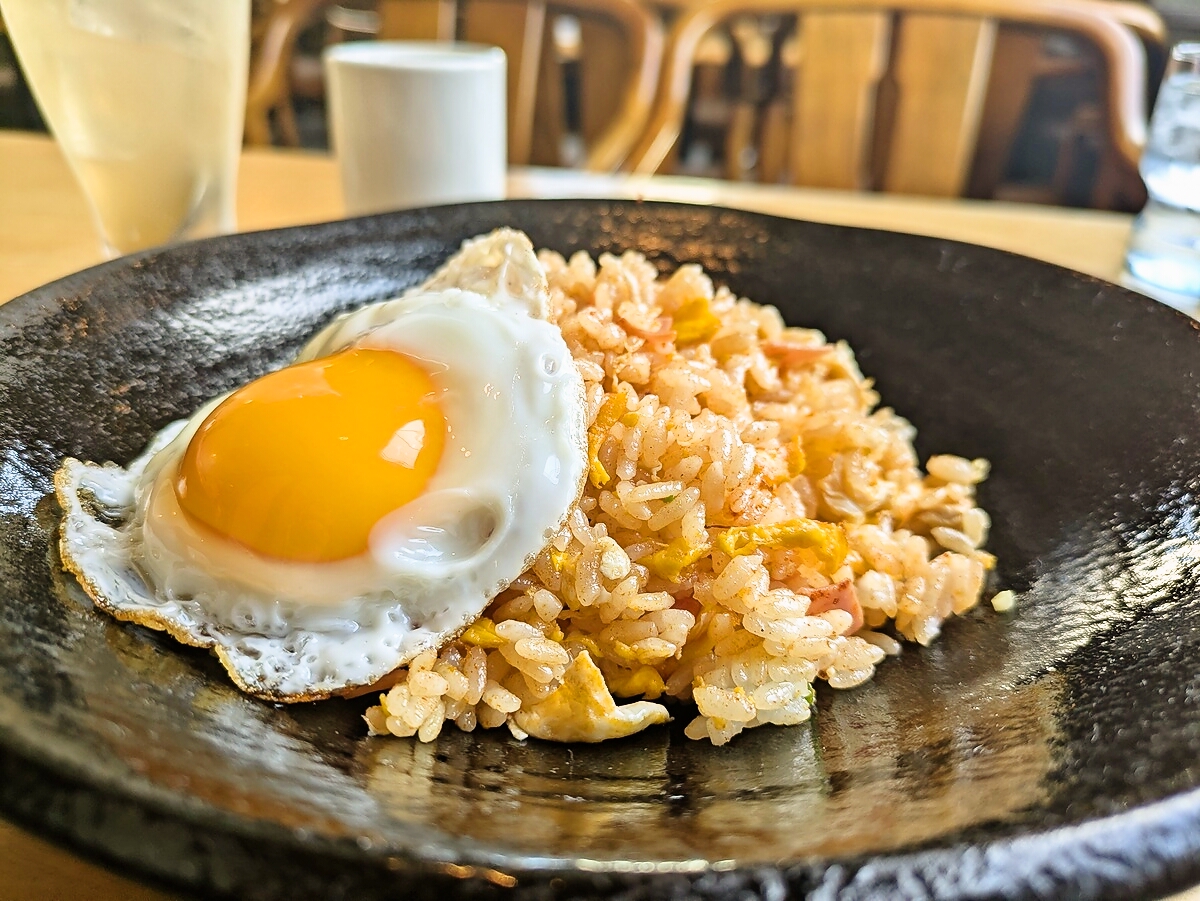 黄身はとろりと半熟気味で、崩してピラフに絡めると一気にコクがアップ
