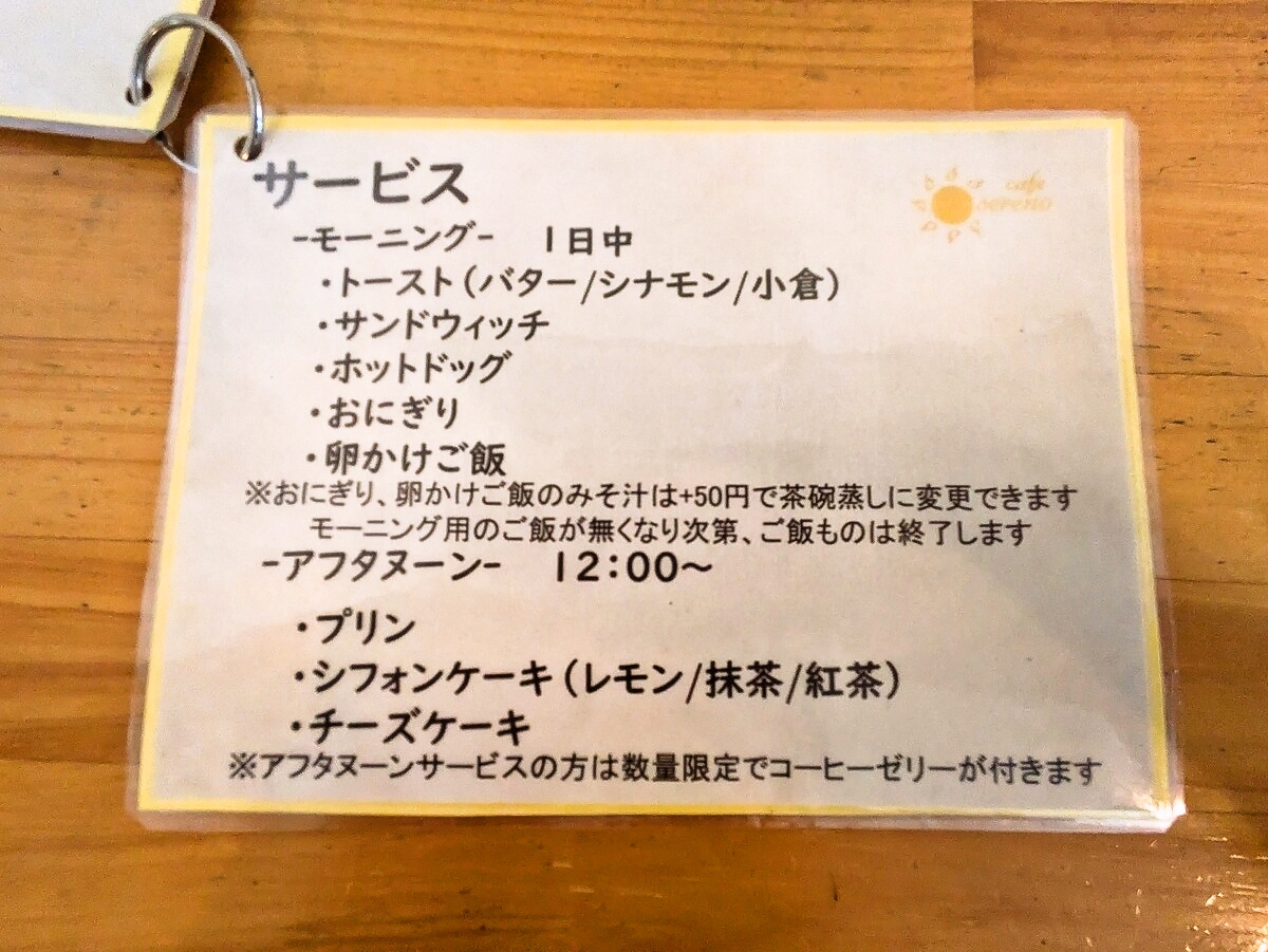 営業時間中はモーニングサービスの提供がある