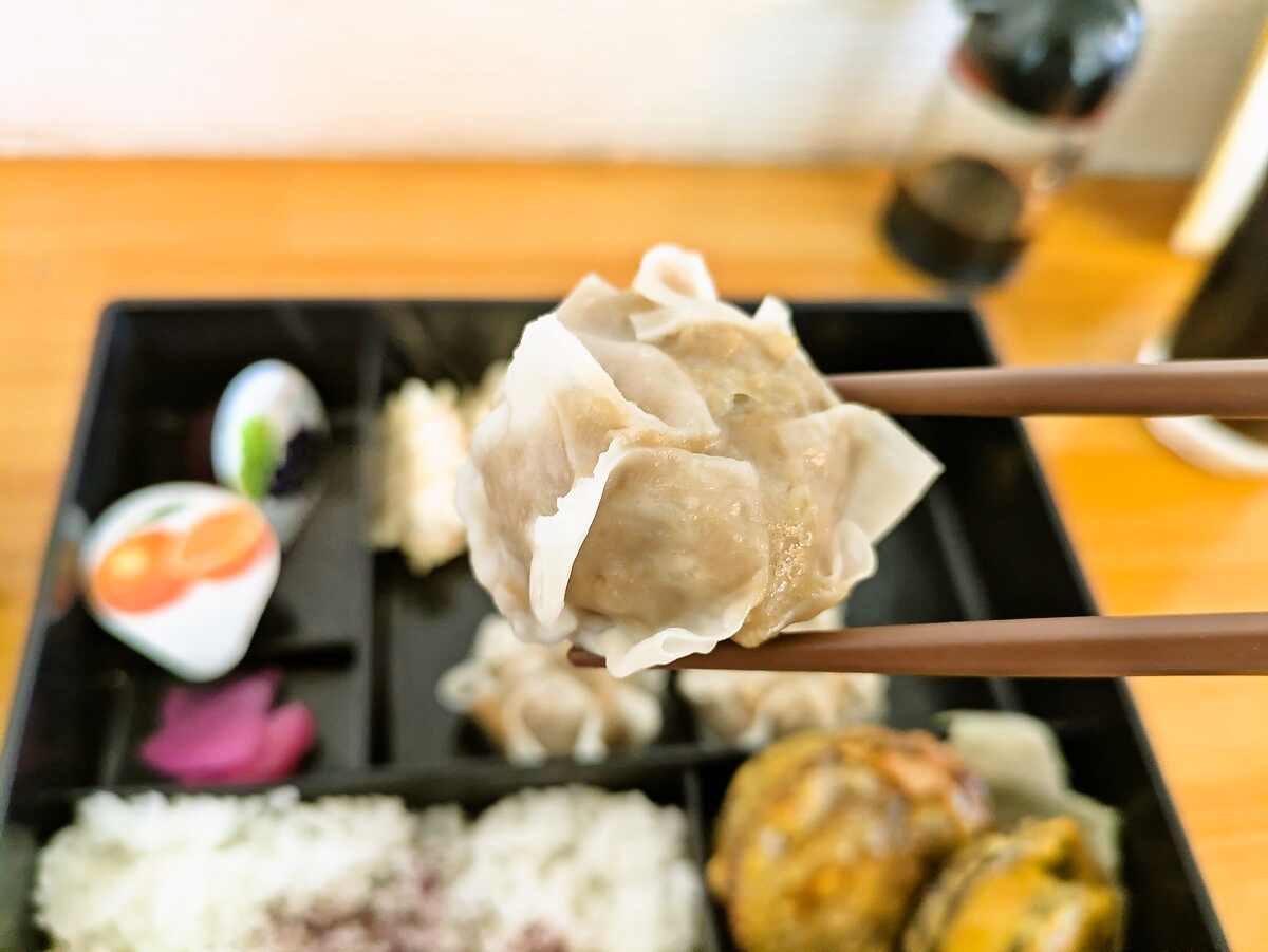 焼売はひとつひとつがしっかり大きく、箸で持ち上げるとずっしりと重みを感じる