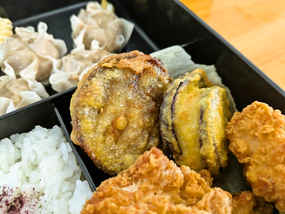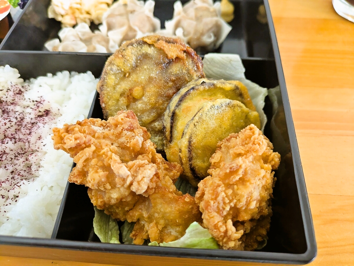 ボリューム弁当は日替り+「茄子の挟み揚げ」