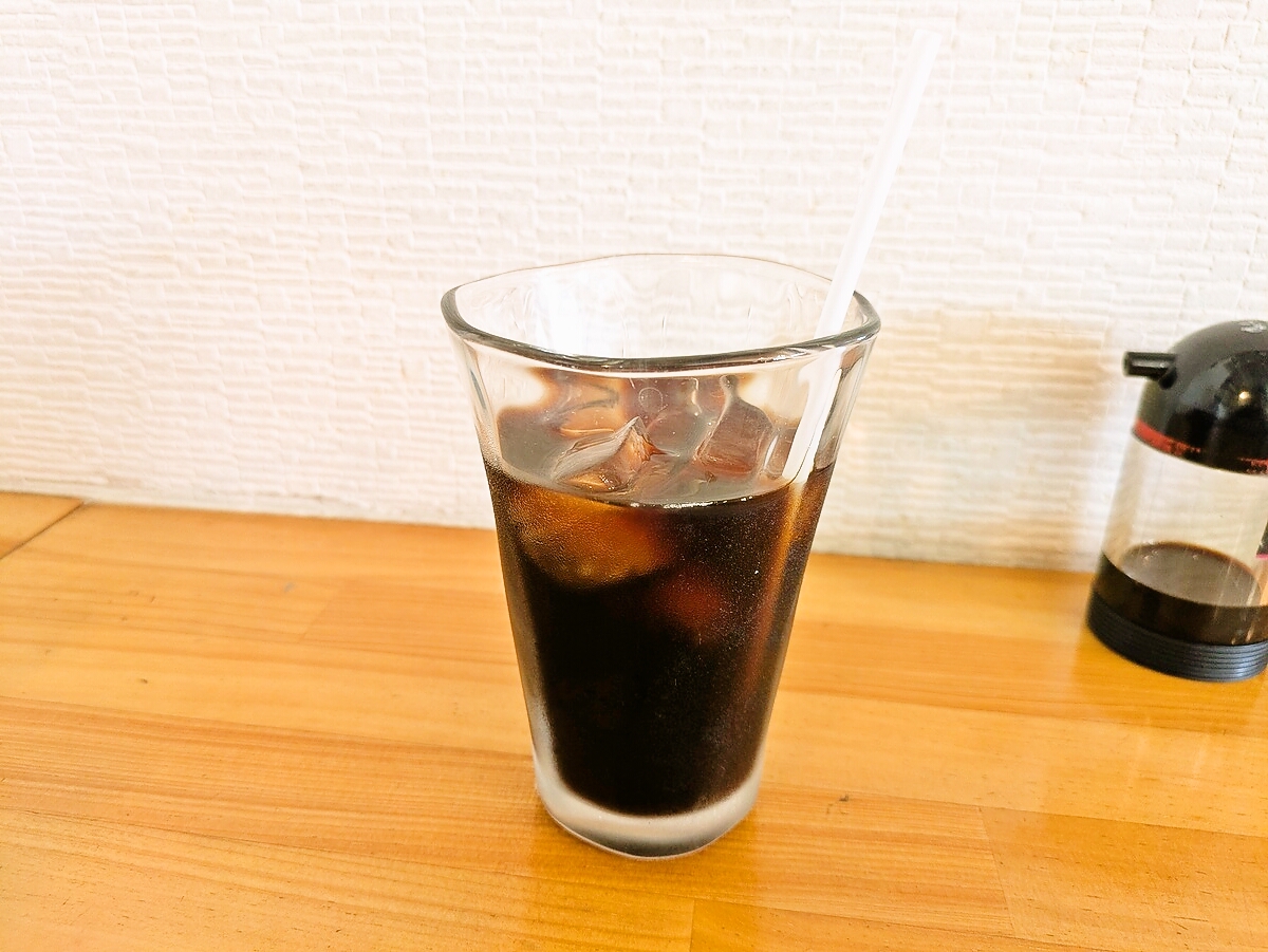食後のアイスコーヒーは、すっきりとした苦味が心地よく、揚げ物中心の弁当をきれいに締めてくれる