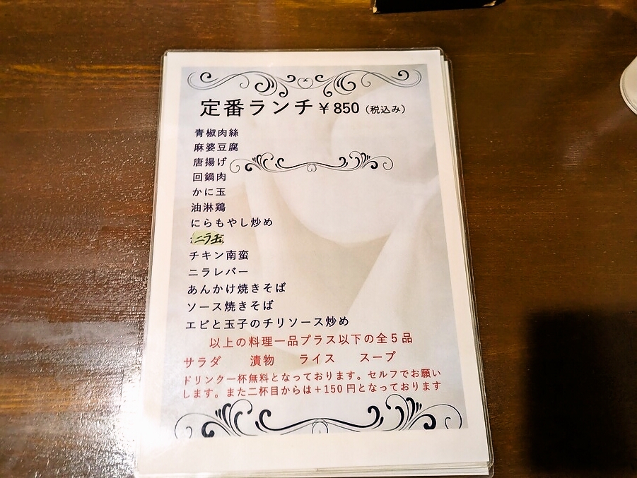 定番ランチ「青椒肉絲(850円)」の配膳
