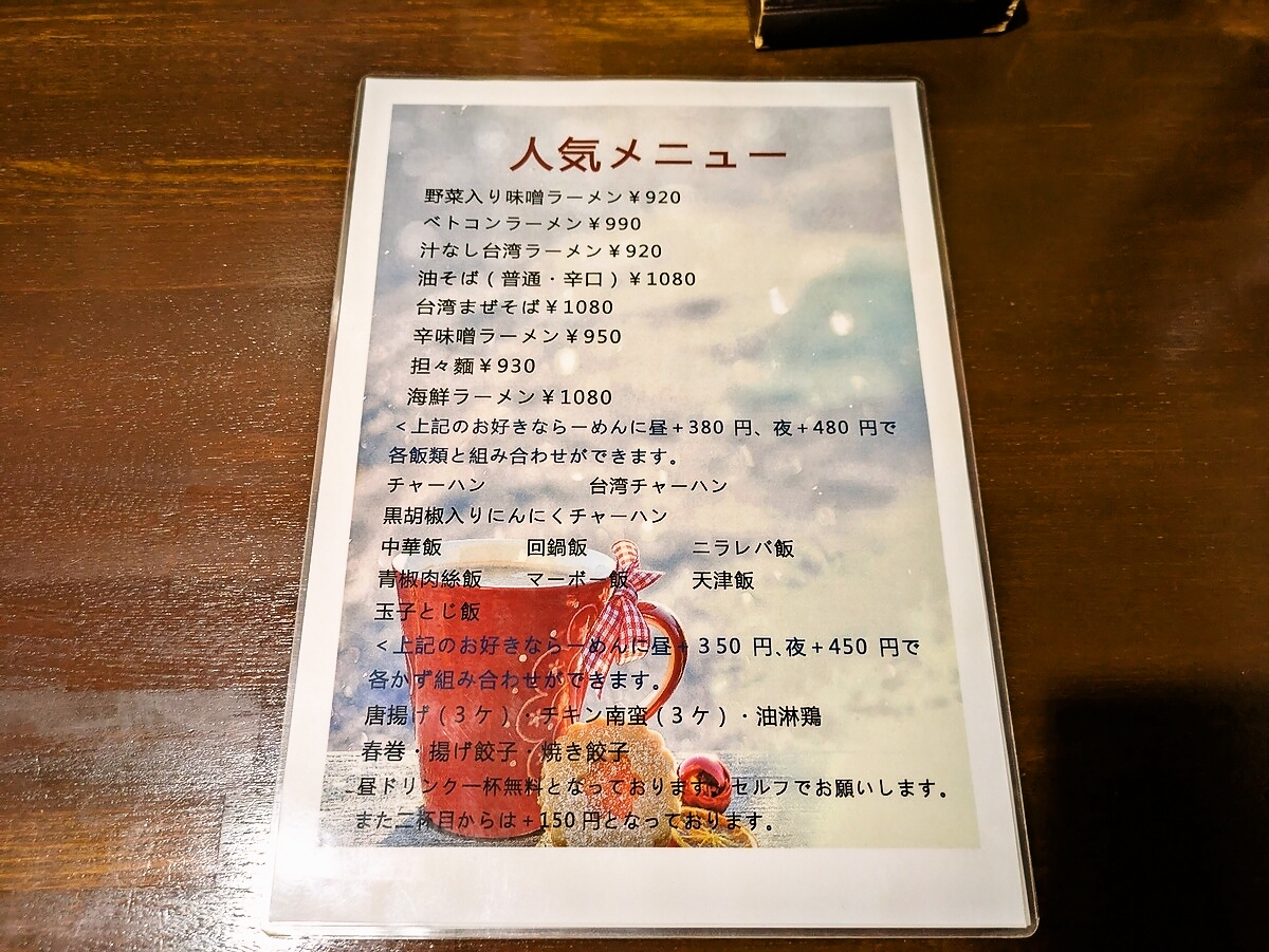 メニューと店内