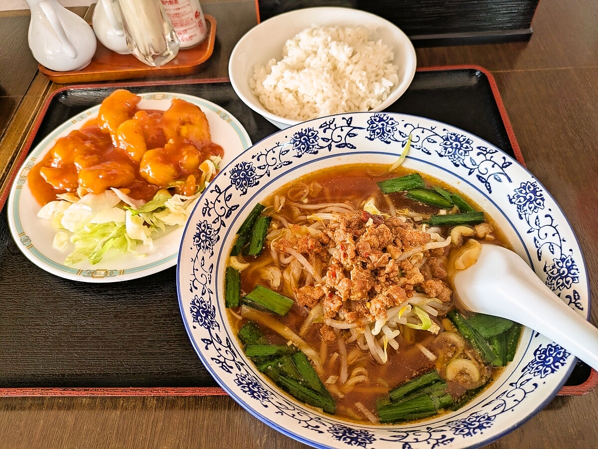 台湾料理 萬龍(一宮市):辛さと甘さが心地よい「エビチリ+台湾ラーメン」880円