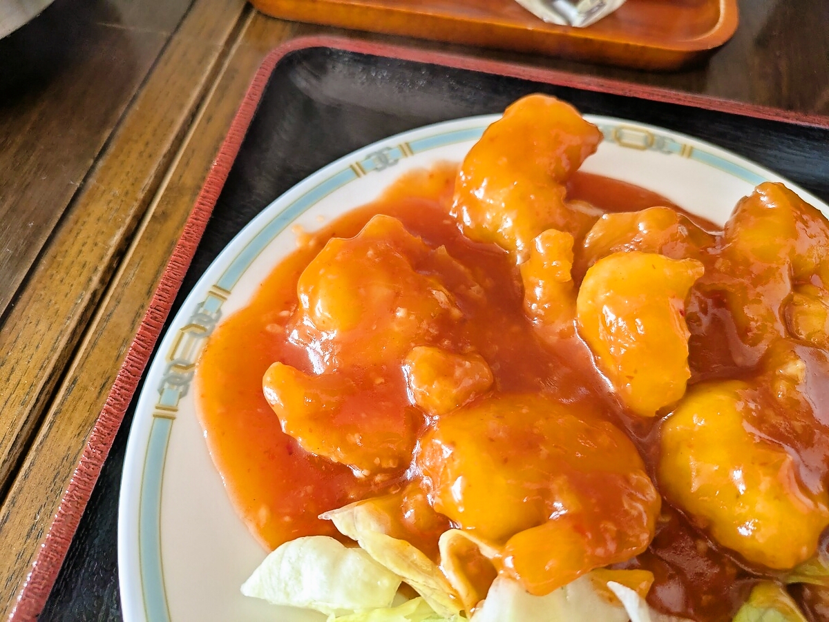 自宅を出る前から決めていた定番ランチ「エビチリ」をオーダー