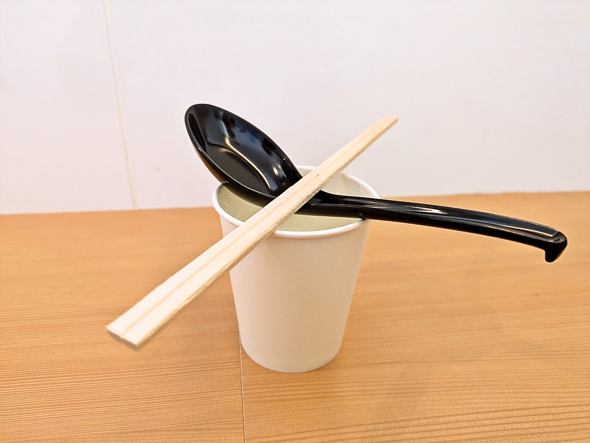 トッピングや麺マシの場合は、食券のまわりに“洗濯バサミ”が付けられる