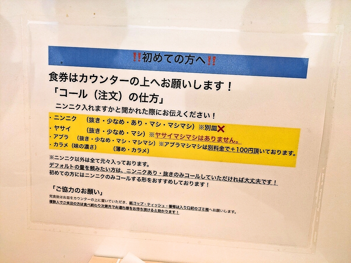 「ニンニクマシ、ヤサイ少なめ、その他はデフォルト」でお願いする