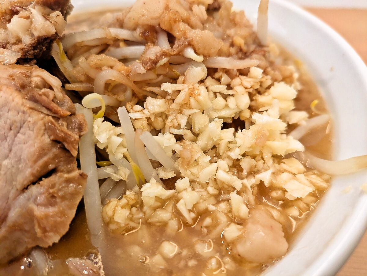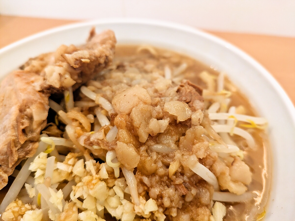 ニンニクマシのパンチ、太麺の存在感、豚の満足度、そしてデフォルトのアブラとカラメが織りなす“二郎系の王道”がしっかり形になっている
