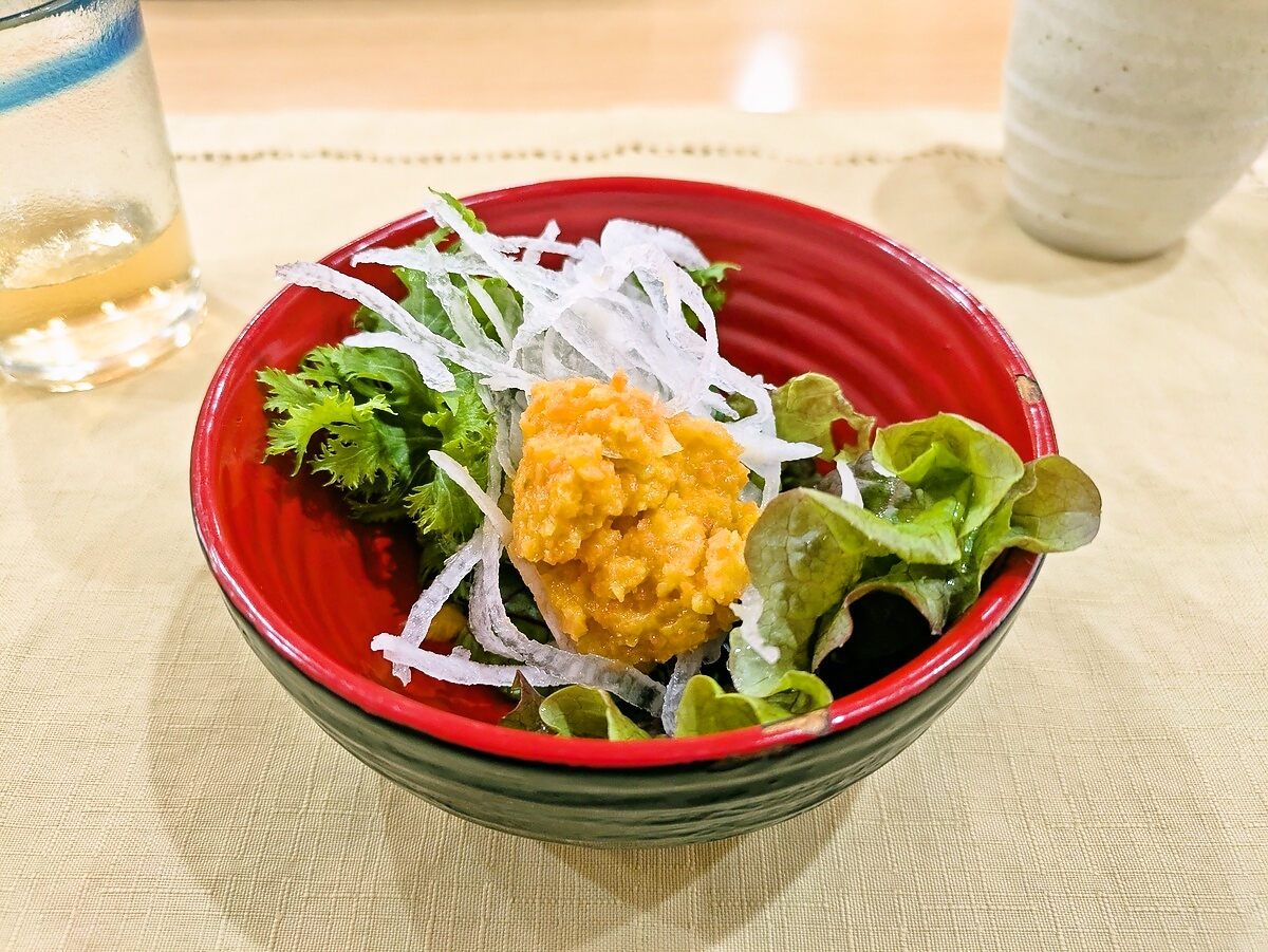 サラダはニンジンのすりおろしドレッシングでさっぱりいただく