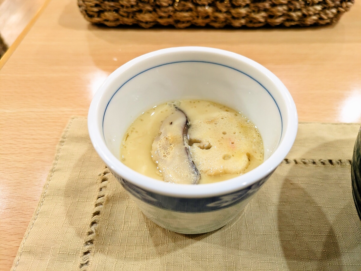 ふわふわトロトロの卵液に、しいたけと銀杏の食感がアクセント