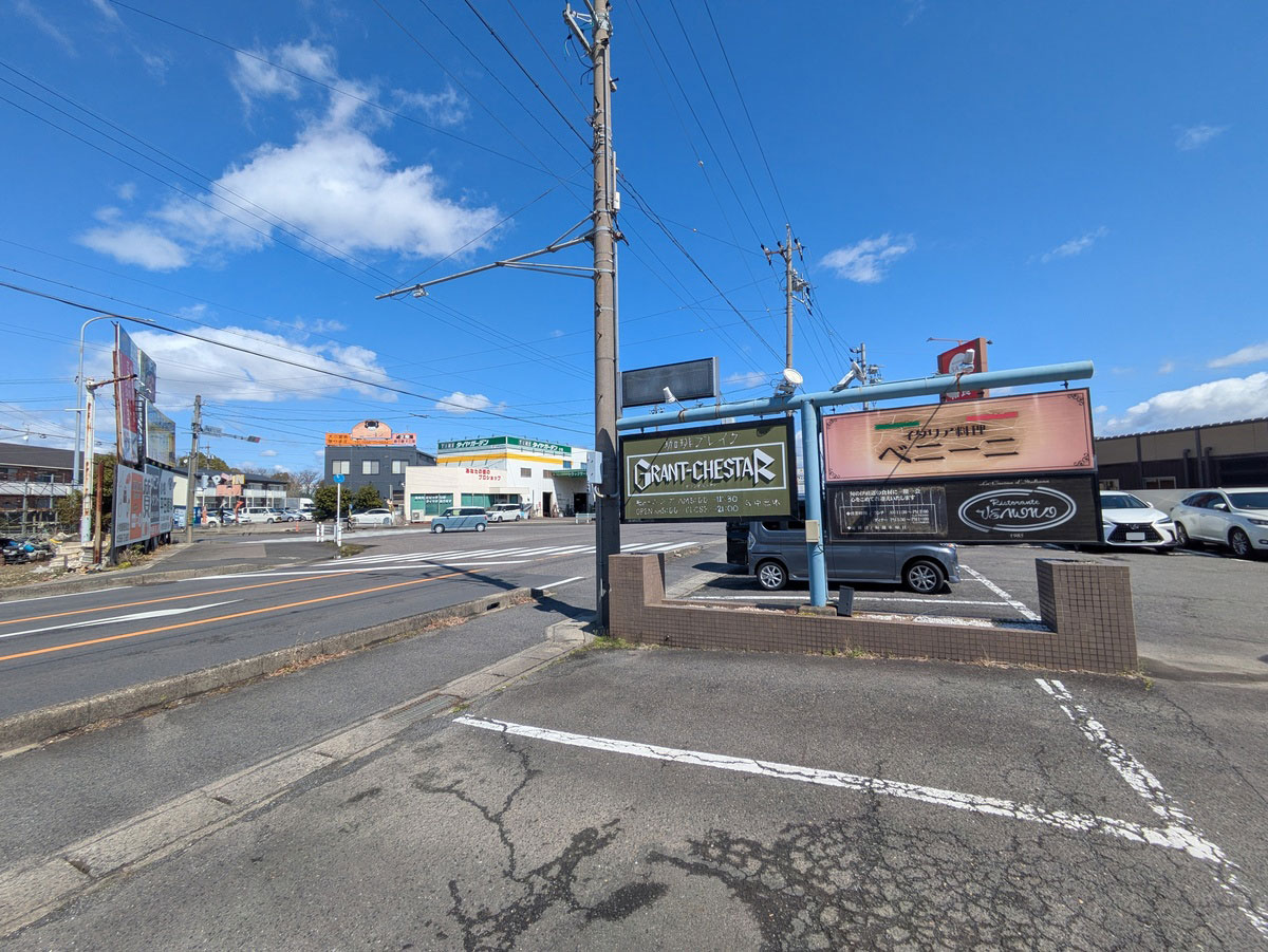 県道25号線と県道451号線の交わる「常普請三丁目西交差点」の角に位置する