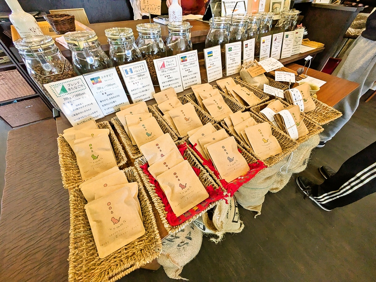 レジ前に並べられた販売用の自家焙煎コーヒー豆