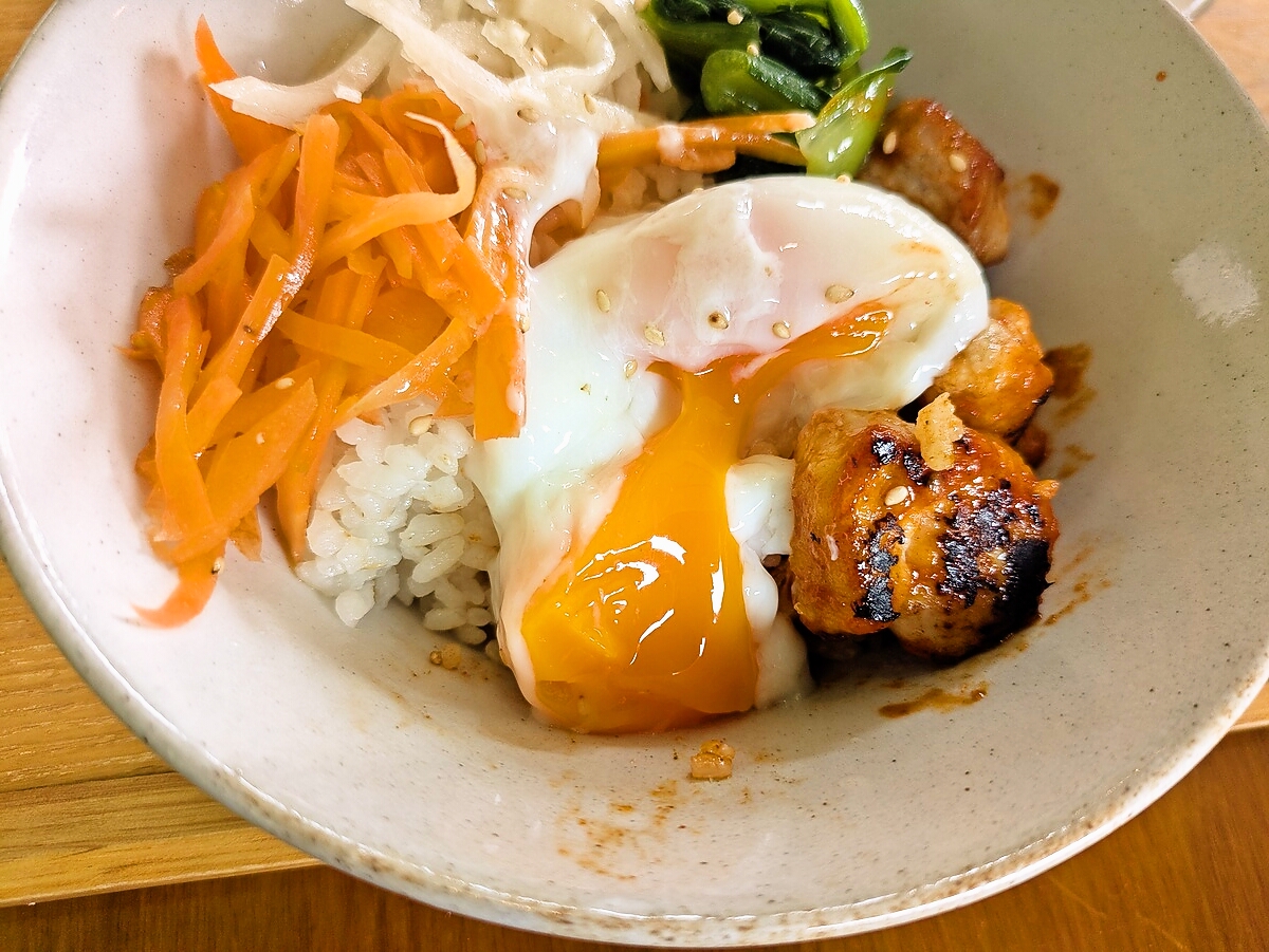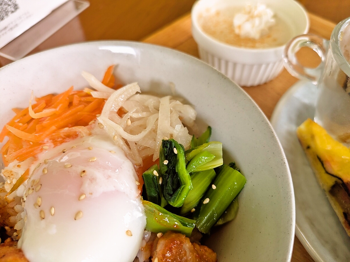 ヤンニョムチキンの満足感、温たまのまろやかさ、ナムルの爽やかさ、そしてキッシュプレートの豊かさまで揃い、ひとつのトレイに小さな旅のような世界が詰まっていた