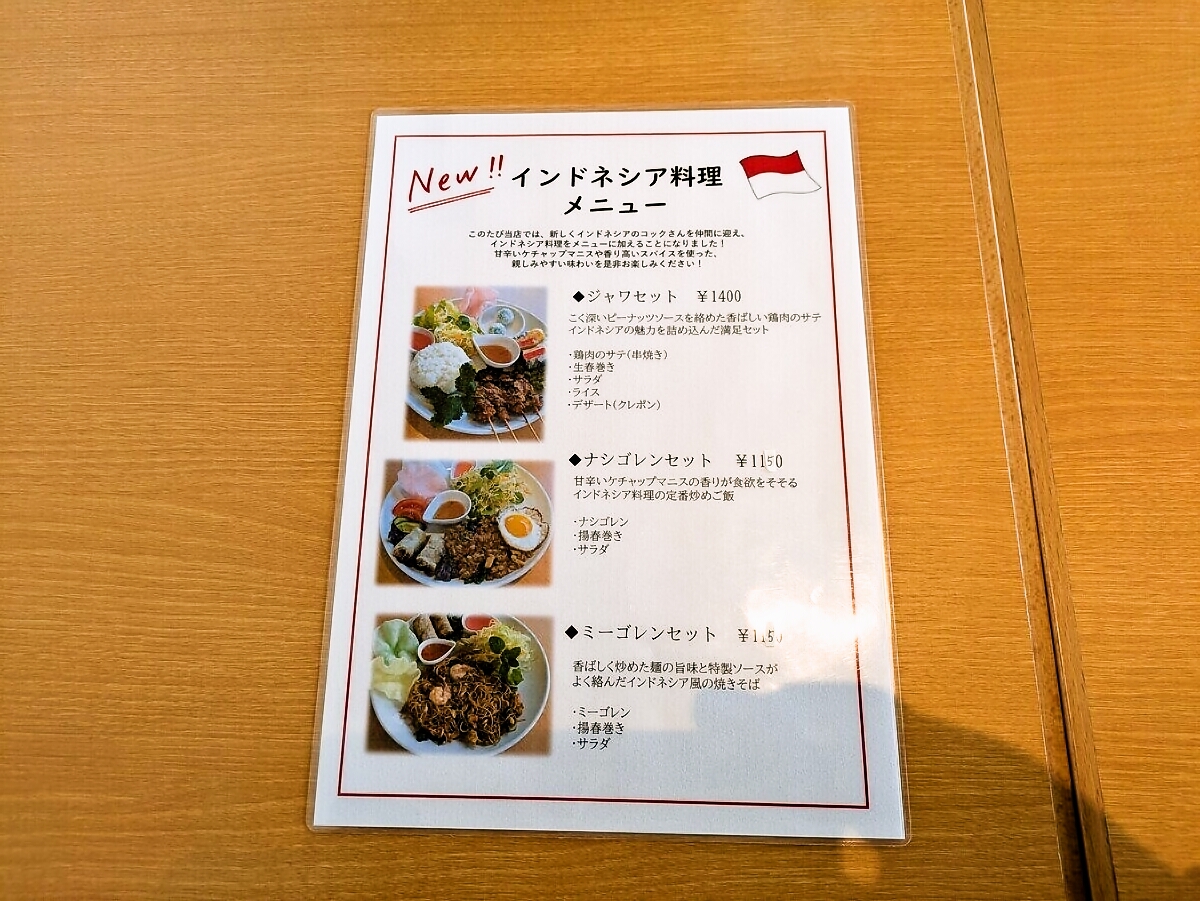 先月からインドネシアのコックさんが仲間に加わり、インドネシア料理がメニューに加わったことを知る